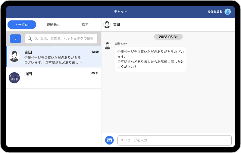 関心度の高い相手と具体的な情報交換を行い、商談や関係構築につなげることができます。