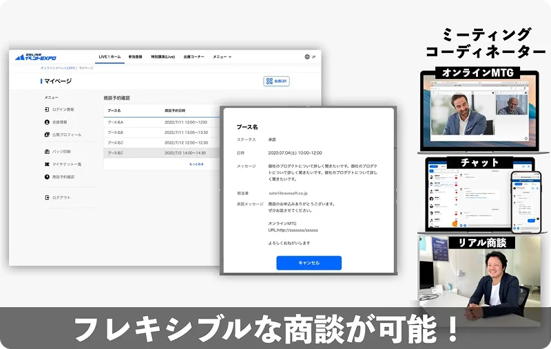 出展者の空き時間を確認し、その場で商談予約が可能。
