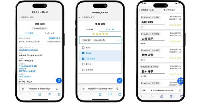 QRコードスキャンで非接触の名刺交換を実現。データは即時リスト化され、