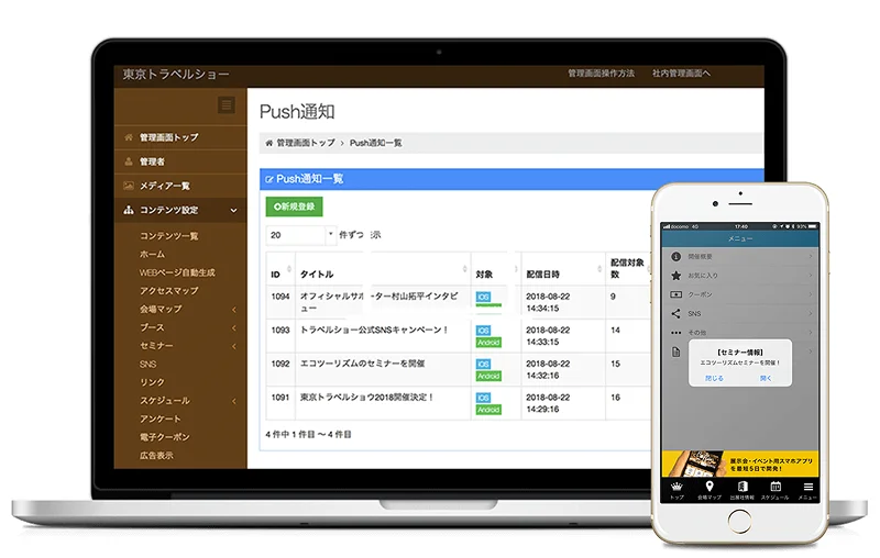 プッシュ通知で届けたい情報を即配信