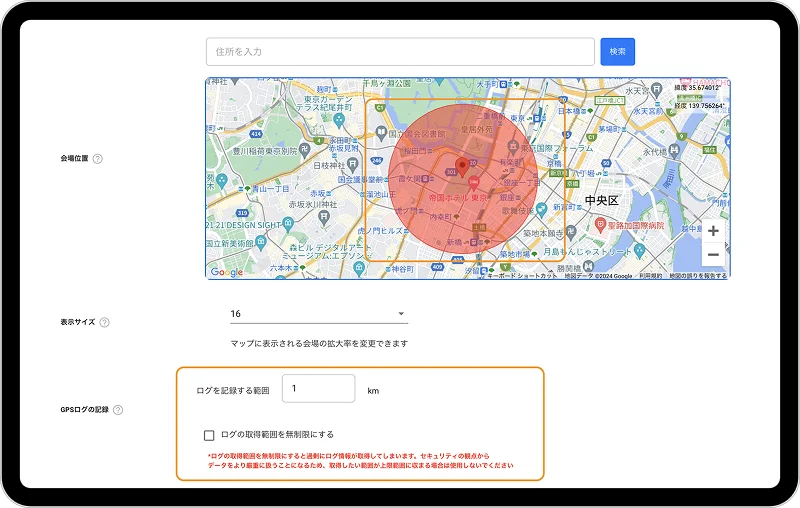 エリア内の行動ログの取得設定