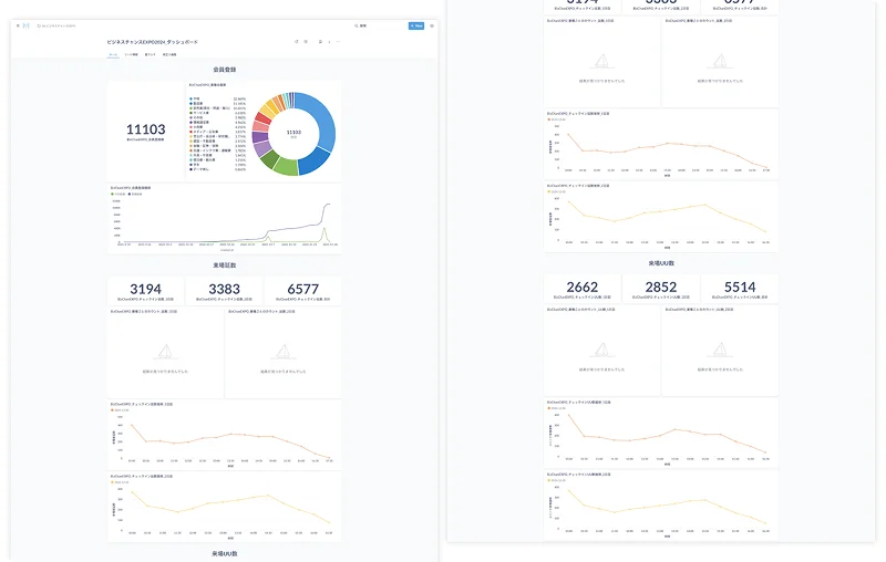 来場数や属性分布、人気コンテンツの反響をリアルタイムにグラフ化。現場の状況を即座に把握し、プロモーションの強化や運営の軌道修正に役立てます。