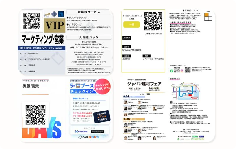 出展者、来場者、プレス、VIPなど、登録属性に合わせてバッジの色やレイアウトを自動で出し分け可能。ロゴの配置やQRコードの印字、フォントサイズの調整など、イベントのブランディングに合わせた最適なデザインを実現します。